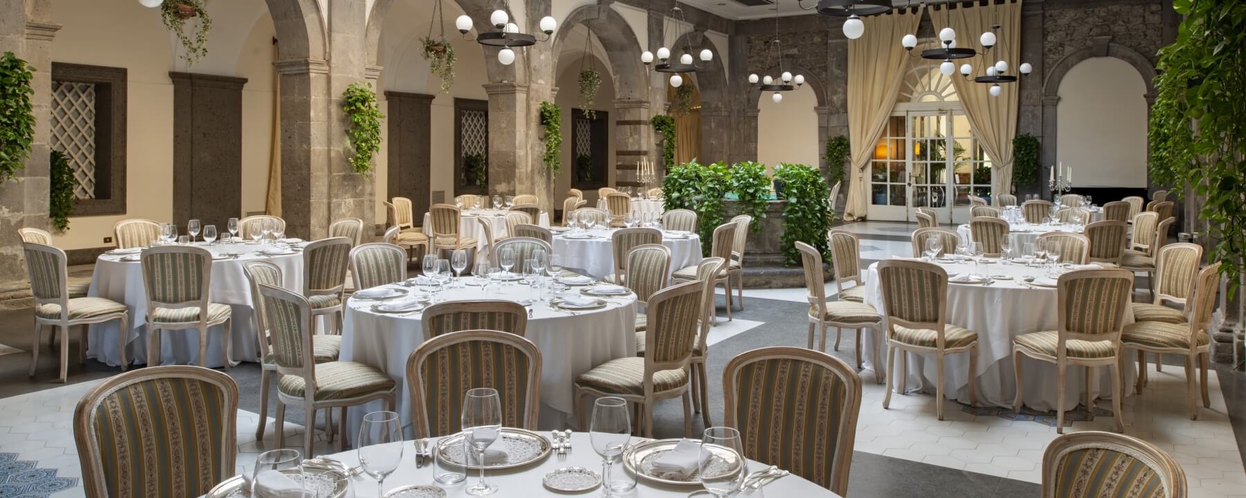 Il suggestivo tramonto sulla terrazza a picco sulla costiera, insieme all’antico Chiostro del ‘600 trasformato in salone delle feste, fa da sfondo a matrimoni e piacevoli momenti conviviali.